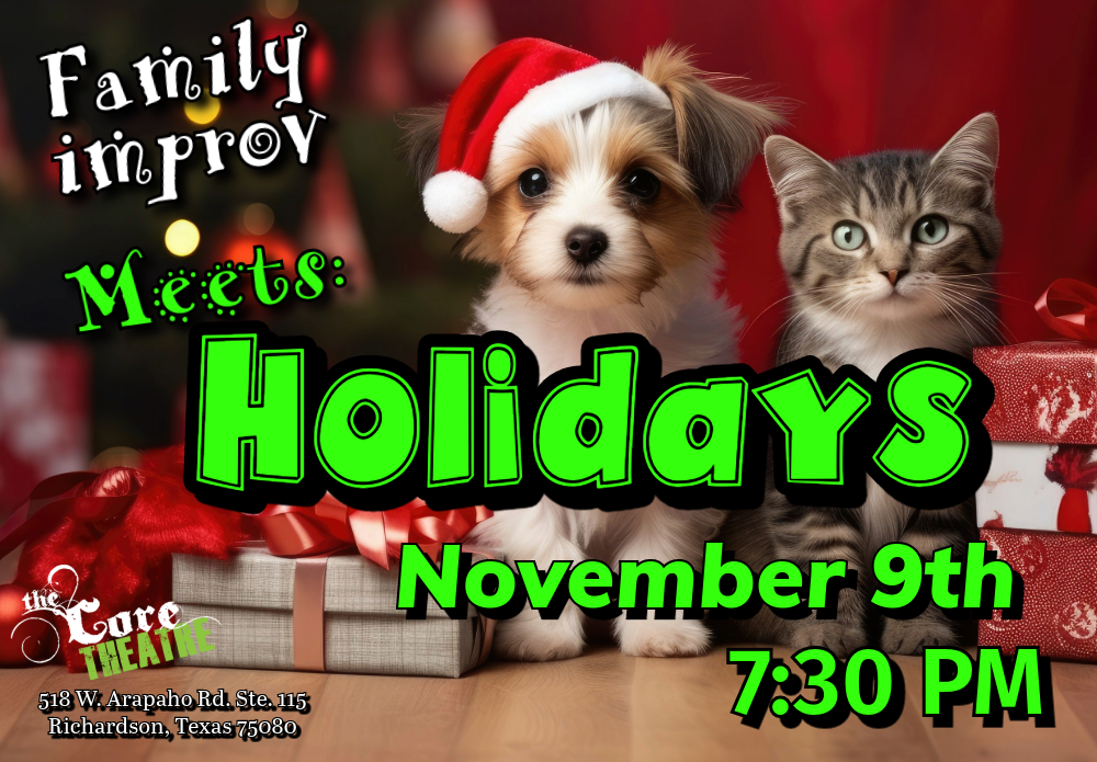 Bring the kids for a night of Family Fun at The Core Theatre! We perform a high-energy, original, fun, and family-friendly show. We invite the audience to be part of the entertainment by giving us your creative suggestions throughout the evening. Get your tickets now - Seating is limited! Share it and tag at least three friends!